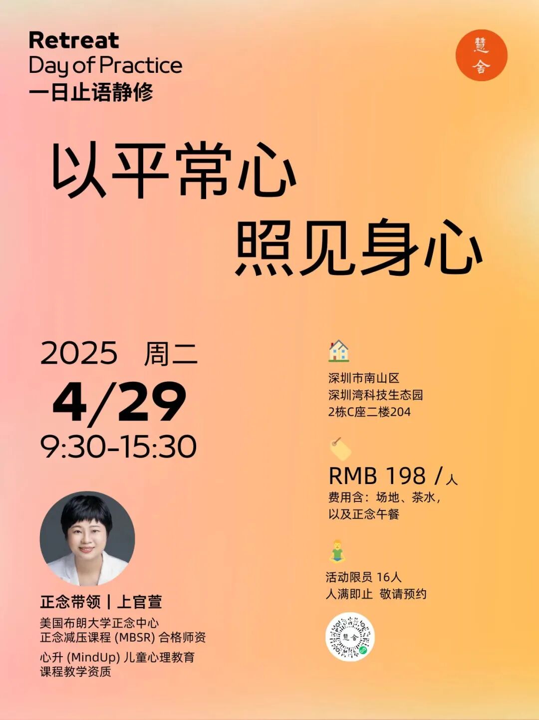 【4月29日 周二】一日止语静修:以平常心,照见身心