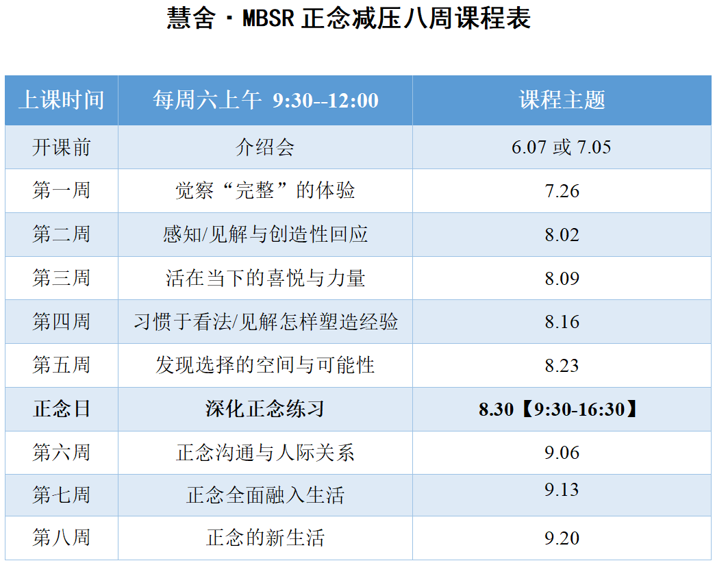 2022年始,为大众开设MBSR正念减压八周课程